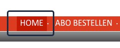 Ein ausgewählter Menüeintrag weißt, zum benachbarten (nicht ausgewählten) Menüeintrag, nicht den minimalen Kontrast von 3:1 auf und enthält keinerlei anderer Hervorhebungen. Dies gilt für die Desktop als auch die mobile Version.