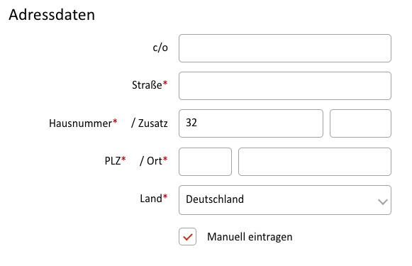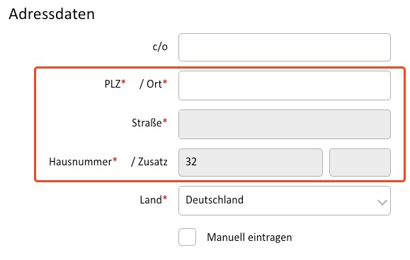 Beim Klick auf die Checkbox "Manuell eintragen", wechseln die Eingabefelder oberhalb die Reihenfolge. Die Eingabefelder sollten in gleicher Reihenfolge bestehen bleiben.