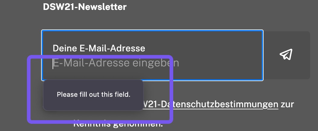 Form Felder sollten Fehler eindeutig benennen z.B. "Email nicht korrekt" oder "Name fehlt". Generische Fehlermeldungen des Browsers sind nicht ausreichend.