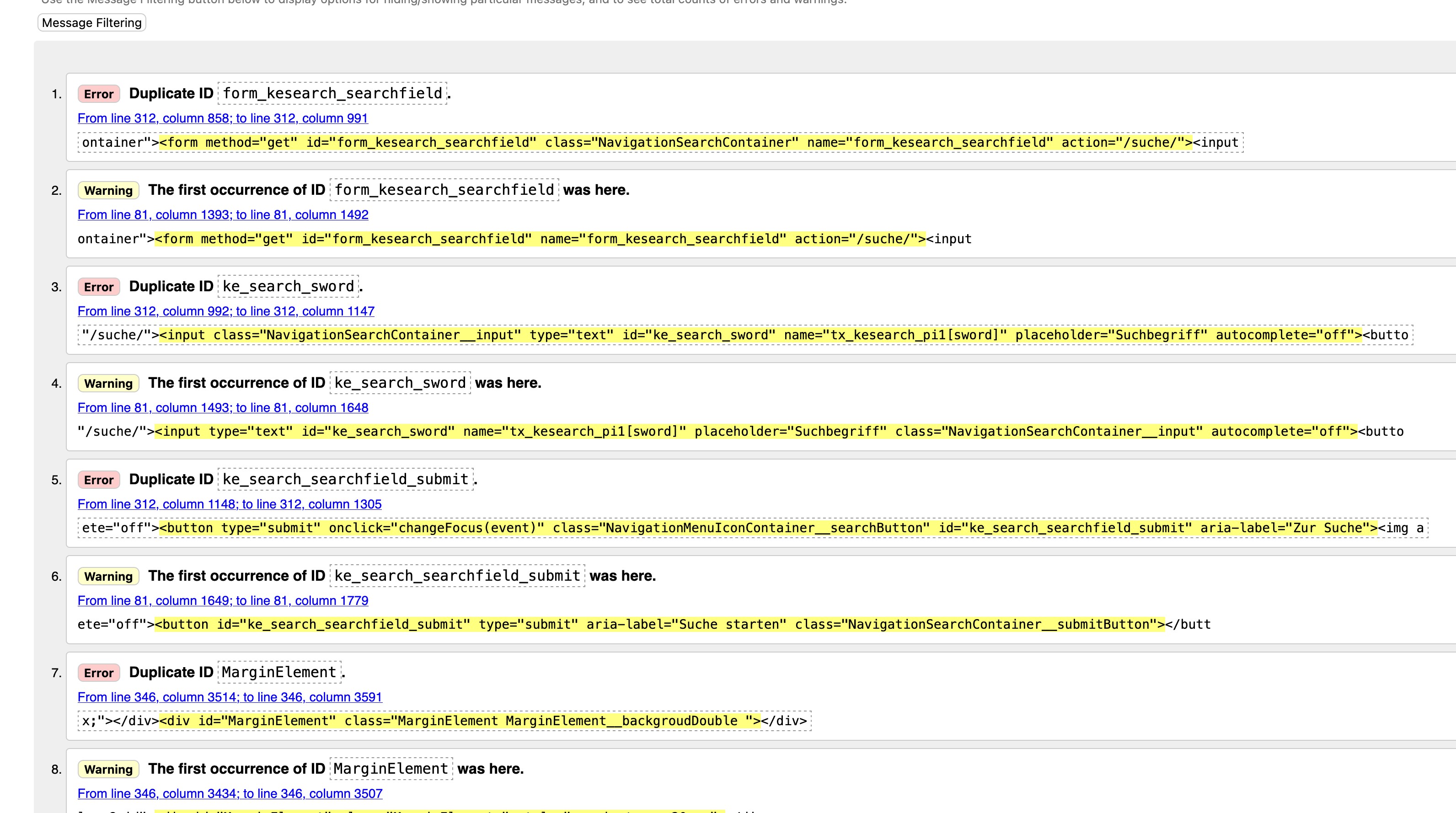 Verstoß Doppelte IDs In der HTML Syntax werden IDs doppelt verwendet. Dies darf nicht gemacht werden.