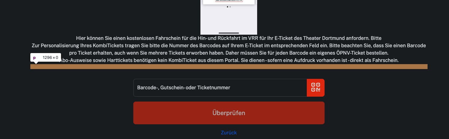 Auf der Seite Teater Dortmund KombiTicket werden leere HTML p-Tag Elemente angezeigt. Diese müssen entfern oder mit Text gefüllt werden.