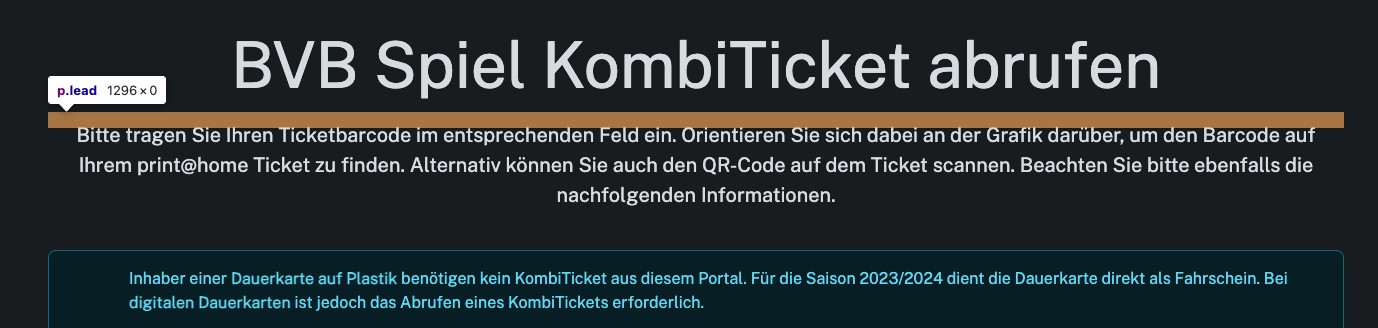 Es werden auf der Seite des BVB Spiel KombiTicket leere HTML p-Tag Elemente angezeigt. Diese müssen entfern oder mit Text gefüllt werden.