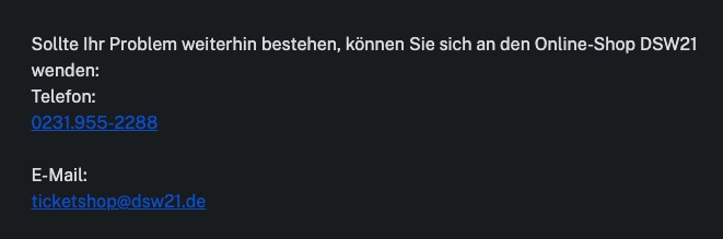 Detailseite BVB Spiel und Detailseite Theater: Dunkler und Heller Modus: Der Text des Buttons "Überprüfen" weist nicht den minimalen Kontrast von 4,5:1 auf. Sowohl im aktiven als auch im inaktiven Zustand. Dunkler Modus: - Der Text "Zurück" weist nicht den minimalen Kontrast von 4,5:1 auf. - Der Text der Telefonnummer und E-Mail Adresse weist nicht den minimalen Kontrast von 4,5:1 auf. Heller Modus: Der Text "Barcode-, Gutschein- oder Ticketnummer" bei ausgefülltem Eingabefeld, weist nicht den minimalen Kontrast von 4,5:1 auf.